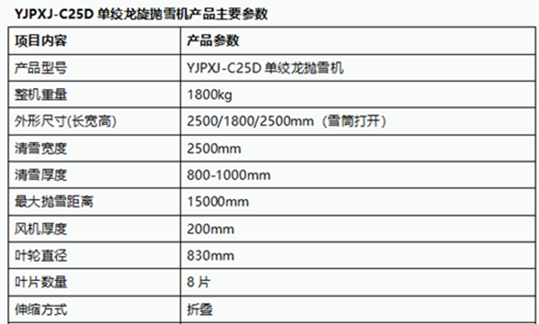 YJPXJ-C25D自帶動力單鉸龍拋雪機